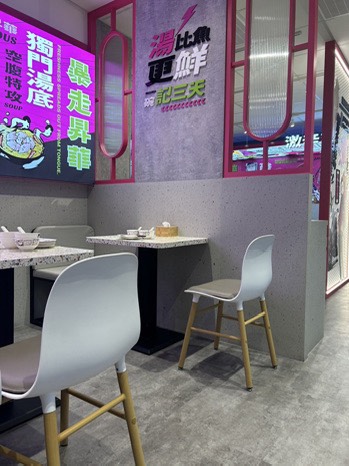 夏虞家具-商業空間家具椅子訂製領導品牌/酸菜魚品牌餐廳塑膠椅子水磨石桌面家具訂製工程作品